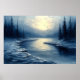 Eine faszinierende abstrakte Landschaft, die einen ruhigen Fluss durch einen unberührten Wald zeigt, der das sanfte Licht der Dämmerung reflektiert. Große Messerstriche und geschichtete Texturen erinnern an den ruhigen Wasserfluss und die Stille des umliegenden Waldes. Die Verwendung von tiefer Blues und eisigen Weißen erweckt den friedlichen Rhythmus der Natur und schafft ein bemerkenswertes, aber beruhigendes Stück, das sich perfekt für eine minimalistische oder naturlich inspirierte Innendekoration eignet.