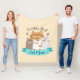 Adorable braune, graue und weiße Katzen-Illustration mit Band, Pfoten, beigefarbenem Hintergrund und Text "Weltbeste Katze-Mama" auf Fleecedecke.