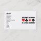 Stellen Sie Ihre trockene doppelte Brückenseite mit diesen Visitenkarten für zur Schau, nächstes Mal wenn Sie sich vorstellen! Aufmachung der vier Karten-Anzüge zusammen mit dem folgenden timeless Brücken-Sprichwort -- oder Sprichwort in irgendeinem strategischen Spiel: "Die beste Handlung ist eine gute Verteidigung". Lassen Sie andere ein Doppeltnehmen an Ihrem folgenden tun Treffen-und-grüßen!