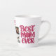 Leckerei Mama zu einer herzlichen Überraschung mit dem Namen unserer Mutter und Foto Collage Latte Tasse. Dieses moderne Familiengepäck verfügt über ein stilvolles, schwarzes Drehbuch mit einer Touch rosa Blumen, das das Zitat Beste Mama aller Zeiten zeigt. Personalisieren Sie es mit ihrem Namen und bis zu 10 hochgeschätzte Fotos online. Erstellen Sie eine benutzerdefinierte Latte-Tasse, die so einzigartig ist wie sie.