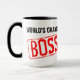 Weltweit die beste Boss Coffee Tasse. Eine lustige Geschenkidee für das Büro am Boss Day. Individualisierbarer Geschäftstext und Farben. Roter Gummi Briefmarke Design.