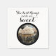 Eine Kombination aus Fotografie und Backen, diese Servietten haben ein Foto eines Kuchens und schreiben "Die besten Dinge im Leben sind süß"