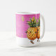 Die Kaffee-Tasse für die besten Freunde, dieses Design zeigt Ananas kawaii Figuren umarmt, um Freundschaft und Spaß Zeiten. Der rosa und goldene Hintergrund verleiht diesem Design ein fröhliches Gefühl.