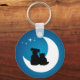 Anpassbarer Schlüsselanhänger mit niedlicher Darstellung einer Katze und eines Hundes, die zusammen auf dem Mond sitzen.