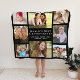 Ein nettes Geschenk für die weltbesten Großeltern. Diese individuelle Collage Decke aus Foto enthält acht Fotos ihrer Enkel, Kinder, andere Familienmitglieder, Haustiere, etc. Passen Sie auf Wunsch die "besten Großeltern der Welt" an und fügen Sie die Enkelkinder-Namen als Signatur hinzu, alles in moderner weißer Typografie vor schwarzem Hintergrund.