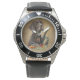Herrenuhr aus Edelstahl mit schwarzem Lederarmband