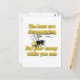 Diese komische Postkarte über das Verschwinden von Bienen zeigt eine lustige Biene, die warnt: "Die Bienen verschwinden; essen Sie Ihren Honig, solange Sie können." Was mit der Erderwärmung, der Umweltverschmutzung und anderen unbekannten Umweltproblemen passiert, sind einige Arten verschwunden. Obwohl das Verschwinden von Bienen verheerendere Auswirkungen auf das Leben auf der Erde hätte als der Mangel an Honig, benutzt dieses komische Sprichwort Spaß, um die Menschen daran zu erinnern, dass die Bienen tatsächlich verschwinden.