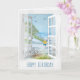 Open White Window and Sheer Curtain With Young Walking Ocean Beach Scene for Birthday