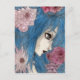 Tief ozeanblaue Nymphe mit rosa Blume. Handgezeichnet von Laine.