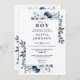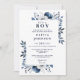 Diese elegante "es ist ein Junge" blaue Blütendusche kann mit Ihren Informationen in der modernen Typografie personalisiert werden und Ihre Registrierung QR-Code und zusätzliche Details auf der Rückseite. Entwickelt von Thisisnotme©