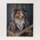 Dieses Puzzle aus weißem Shelden verfügt über einen Schuhhhhund, der in einem Wandhut gekleidet ist, und eine passende Jacke, die die elektrische Gitarre spielt. Ideal für den Liebhaber von Schutzhütten in Ihrem Leben.