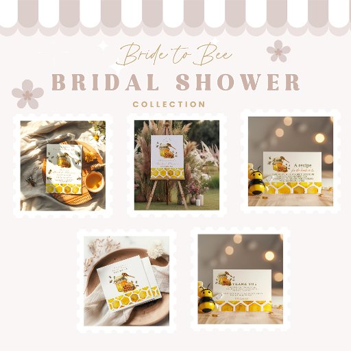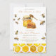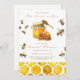 Feiern Sie die Braut mit diesem süßen und fröhlichen honigbezogenen Design. Mit einer Aquarellblüte, goldenen Honigwaben und lebhaften Bienen ist diese Einladung ideal für eine rustikale Gartendusche oder einen Brunch im Hinterhof. Elegantes Drehbuch und charmante Details machen es zu einem beliebten Treffpunkt für Sommer- und Frühjahrsfeiern.