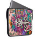 Lebhaftes, farbenfrohes Design mit einer lustigen Tarot-Karte mit einem Skelett. Das Skelett hat wild rosa Haare mit Blume darin, ein Zuckerschädelgesicht und hält ein offenes Buch. Der farbige Text lautet: "Der Bücherwurm". Dieses Design ist auf einer Vielzahl von Produkten erhältlich.