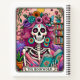 Lebhaftes, farbenfrohes Design mit einer lustigen Tarot-Karte mit einem Skelett. Das Skelett hat wild rosa Haare mit Blume darin, ein Zuckerschädelgesicht und hält ein offenes Buch. Der farbige Text lautet: "Der Bücherwurm". Dieses Design ist auf einer Vielzahl von Produkten erhältlich.