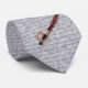 Ein weiches Grau mit den Wörtern, welche die gesamte Krawatte umfassen. Ein Stift und eine Briefmarke am bereiten. Oh oh, ist was dieses? Der Stift scheint geleckt zu haben.