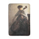 Dieses Design zeigt ein Gemälde des amerikanischen Impressionisten Joseph DeCamp (1858-1923). Es zeigt eine Cellistin, während sie ihr Musikinstrument hält und eine Melodie spielt, indem sie den Bogen über die Saiten zeichne. Die Frau sitzt am Rand eines Holzstuhls, während sie Cello spielt. Ihre Haltung ist aufrecht, aber anmutig. Das Cello, auch als Violoncello bekannt, ist ein gebeugtes Saiteninstrument der Violinfamilie. Seine vier Saiten sind in der Regel in perfekte Fünftel gestimmt: von niedrig bis hoch, C, G, D und A. Das ursprüngliche Werk wurde 1908 von Joseph DeCamp gemalt.
