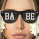 Coole schwarze Retro-Sonnenbrille mit dem Text "BABE". Große Sommer- oder Party-Brille für Damen und Herren.