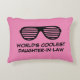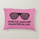 Die Coole Tochter der Welt im Jura ist lustig rosa Akzent Kissen. Individuelles Farbkissen mit humorvoller Sonnenbrillengestaltung und individuellem Text. Kühnes Typografie-Design. Spaß Geschenkidee für Freunde und neue Familienmitglieder. Erstellen Sie Ihr eigenes einzigartiges Geschenk für ihn oder sie. Doppelter Druck. Rosa oder benutzerdefinierte Farbe.