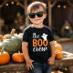 Moderne, auf Halloween Shirt abgestimmte Gestaltung mit dem Text "The Boo Crew" in orangefarbenen und weißen Buchstaben mit einem kleinen Geisterakzent. Bestellen Sie für jedes Mitglied Ihrer Crew.