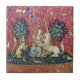 Die Dame und das Einhorn, Sight (La Dame a la licorne, La vue) mittelalterliche Tapisserie (um 1500). Dieser Wandteppich ist Teil einer Serie von sechs. In jedem Wandteppich findet sich eine mittelalterliche Dame in verschiedenen Posen. Jede Szene zeigt einen der fünf Sinne, sowie eine sechste Szene namens Mon Seul Desir (mein einziger Wunsch).