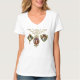 Dieser trendige T - Shirt mit Nacken besticht durch diesen sensationellen, originalen Trompe-Ploie ("fool the eye") der Digitalkünstlerin Leslie Sigal Javorek, der das Aussehen einer antiken goldenen Halskette mit gerahmten, handgemalten Emailporträts von 3 der dauerhaftesten, beliebtesten Modellen des 19. Jahrhunderts (Evelyn Nesbit, Maude Adams & Lily Elsie), die von der Öffentlichkeit und den Jugendstil-Künstlern wie Alphonse Mucha und Charles Gibson, die sie inspiriert haben, bevorzugt werden.