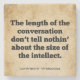 Erholung deinen Drink auf diesem Western-Untersetzer mit Worten: "Die Dauer des Gesprächs sagt nichts" über die Größe des Intellekts." Nehmen Sie die Weisheit, die es vermittelt, und erinnern Sie uns daran, Substanz zu bewerten, und wiederholen Sie die Bedeutung eines sinnvollen Dialogs in jedem Austausch. Meine Südlichen Dinge sind ein Zuhause-Designstudio mit allen Aspekten des Lebens dieser Frau - Texas, der Süden, der Glaube und der Spaß.