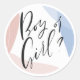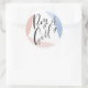 Moderne Gender Reveal Party Dekorationsticker mit abstrakten rosa und blauen Formen und moderner Kalligraphie. Besuchen Sie den Shop, um die ganze Sammlung zu sehen!
