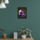 Dieses auffallende 16x20 Poster-Design bietet eine schöne künstlerische und künstlerische künstlerische Fantasie einer magisch-mystischen Amateurkristall-Orb, die in einem Wald schwimmt. Runde Grafik mit goldenem Rand auf schwarzem Hintergrund.