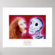 Dieses Poster enthält ein skurriles Paar - eine Frau und ein Skelett - das in intimer Konversation verlobt ist. Es zeigt den lebendigen roten Hintergrund der ursprünglichen Aquarellfarbe, der sich drastisch im Kontrast zum fröhlichen Skelett mit den weißen Knochen und schwarzen Schatten befindet. Es bietet einen ungewöhnlichen Einblick in die "wahre Liebe" und die Leidenschaft des Valentinstag.