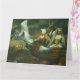 Diese gotische Karte ist illustriert mit drei gotischen surrealen Hexen, die von einem Schwan durch die Luft gezogen werden.