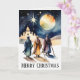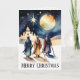 Die Drei Könige Christliche religiöse Weihnachtsfeiertag Grußkarte. Die Magi aus dem Orient gehen durch eine Wüste Nacht, während sie dem Stern von Bethlehem in Richtung Ort der Geburt Jesu folgen. Eine Aquarellbilder, die den Grund für die Saison, die Geburt Christi, hervorruft. Der Vers drin lautet "Möge ihr gesegnet sein mit Hoffnung und Liebe in dieser Weihnachtszeit".