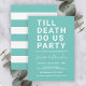 Mit dieser Einladung zum "TILL DEATH DO US PARTY" können Sie eine Dusche für Braut und Bräutigam in der gemütlichen, kühlen und lustigen Atmosphäre genießen. Mit der Textvorlage können Sie den gesamten Text mit den gewünschten Ereignisdetails personalisieren. Diese Einladung ist in verschiedenen Farben erhältlich - hier in weißem Text mit aquamarinem Aquarell und passendem Rugby-Streifen-Muster auf der Rückseite. Für die Koordination des Themas stehen viele passende Party-Produkte zur Verfügung.