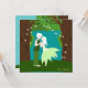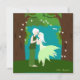 Verkünden Sie Ihre Hochzeit mit dieser schönen Qualitätskarte, die ein Paar Lieblingselfen zeigt, umgeben von Herzen, die wie magische Glühwürmchen fliegen. Das Elfenpaar schaut sich an, ihre Nasen berühren sich fast und sie scheinen bereit zu sein, sich zu küssen. Frau Elfe trägt ein grünes Kleid aus Blättern und scheint zu tanzen und zu ihrer Lieblingselefe zu schwenken. Herr Elfe bekommt die Hände seiner Frau Elfe, die er mit Zärtlichkeit umarmt. Er ist auch grün gekleidet. Elfenhaare sind weiß.
