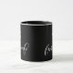 Diese Tasse sagt "Die Ehefrau des Bauern" in einem eleganten, weißen Schriftart vor einem schwarzen Hintergrund.