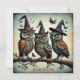 Beängstigend, aber niedlich. Ein Trio von Eulen, die Hexenhüte tragen; surrealer Stil, ein künstlich Intelligenz generiertes Kunstwerk, auf einer Party Einladung, zum Halloween-Vergnügen. *** HINWEIS** Das USPS benötigt für quadratische Umschläge eine zusätzliche Portierung, da diese von Hand verarbeitet werden müssen.