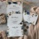 Diese elegante goldblaue Blütenhochzeit mit dreifacher Einladung ist perfekt für eine rustikale Hochzeit. Das Design ist in dunkelblau, blau, blau, navy, rosa, rot, goldgelb und grün, Blume gehalten und in eleganten Bouquets untergebracht. Rett Papier, indem mehr Details in die Einladung aufgenommen werden anstatt auf einer separaten Gehäusekarte.