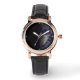 Uhr, Klassische Damenuhr mit schwarzen Lederarmband