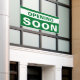 Eröffnung bald Zeichen für neue Geschäftsöffnung. Um den Hintergrund und die Schriftart zu ändern, klicken Sie auf "Bearbeiten mit dem Designwerkzeug".