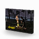 Ein Bild davon, wie Adam ein Feuer entzündet, während der erste Sabbat im Garten von Eden zu Ende geht. Tiere können im Hintergrund gesehen werden. Auch die hebräische Textlesung, Havdalah" (lit. "Trennung") erscheint. Die Zeremonie der Havdalah wird am Ende des Sabbat und der Feste rezitiert, um die Unterscheidung zwischen dem abreisenden heiligen Tag und dem normalen Wochentag zu kennzeichnen, der gerade beginnt. Eine der ältesten Segnungen, ihr gehen eine Reihe von biblischen Versen und drei Segnungen voraus - über Wein, Gewürze und Licht - die alle die Zeremonie der Havdalah umfassen. Die Tradition besagt, dass es G-d's Absicht gewesen sei, am Vorabend des Sabbat Feuer zu schaffen, aber es wurde erst nach Sabbads Ausscheiden geschaffen. Als der erste Sabbat beendet war, sah Adam die Dunkelheit herannahen, als das Set Angst hatte. G-d gab Adam zwei Steine, die er zusammenschlug, bis das Feuer hervorkam. In Dankbarkeit äußerte Adam den Segen "Gesegnet bist du. O Herr, der das Licht des Feuers geschaffen hat." Dieser Segen wird während der Zeremonie in Havdalah bis heute gesagt. Die Flamme, die während der Zeremonie in Havdalah angezündet wurde, stellt das erste Feuer dar und erinnert damit daran.