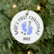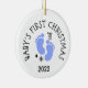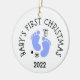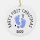 Eine wunderschöne Keramik mit blauen Füßen eines Babys ist der perfekte Urlaubsort für neue Eltern und Familienmitglieder. Datum anpassen