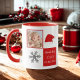 Niedlich Baby's erste Weihnachts-Weihnachtsmannmütze Snowflake Foto Tasse. Roter und weißer Hintergrund mit einer schönen Schneeflocke und einer roten Weihnachtsmannmütze. Feiern Sie mit einer personalisierten Touch das erste Weihnachtsfest Ihres Babys! Die erste Weihnachtsfeier dieses Babys ist die perfekte Tasse, um eine bleibende Erinnerung zu schaffen. Benutzerdefiniertes Foto, Schneeflocken und eine rote Weihnachtsmannmütze fügen der Tasse eine spielerische und fröhliche Touch hinzu, während das maßgeschneiderte Foto sie wirklich einzigartig und besonders macht.