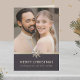 Mit dieser atemberaubenden gefalteten Fotokarte erleben Sie den Zauber Ihrer ersten Urlaubssaison als frisch verheiratete Gäste. Die Vorderseite zeigt ein faszinierendes Foto von Ihnen, sowohl in Ihrer Hochzeitskleidung, strahlend Liebe und Freude. Ein dunkles Banner mit den Worten "Frohe Weihnachten" und anpassbarer Text schafft eine elegante Kulisse vor dem hellen Inneren. Fügen Sie eine herzliche Nachricht und Ihre Skriptsignatur hinzu, um Ihren Lieben herzliche Wünsche zu übermitteln. Der Hintergrund ist dunkel und ergänzt den Festssinn. Eine kleine Schneeflocke in den unteren Drittel verleiht dem Ganzen eine charmante Touch. Diese individuell gestaltbare Karte ist der perfekte Weg, Ihre Freude und Liebe in dieser magischen Zeit des Jahres zu teilen.