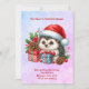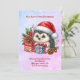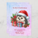 Ein niedlicher Baby-Igel, umgeben von Geschenken, mit einer Nachricht von Mama & Papa. Auch auf der Rückseite der Karte wird eine Meldung angezeigt. Hintergrund ist funkelnd