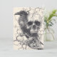 Eine bizarre Harmonie, die von einem Schädel, einem Raben und verflochtenen Zweigen geschaffen wird. Wenn sich die Einladungen für Halloween-Partys langweilig fühlen, ist diese Karte die perfekte Alternative. Das Vintage Ambiente und die abkühlende Atmosphäre werden Ihren Gästen den Moment vorwegnehmen, in dem sie sie empfangen. Fügen Sie Ihrem Party mit dieser außergewöhnlichen Karte eine besondere Touch hinzu. (AI-Generated Artwork)