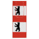 Weinbeutel mit Berliner Flagge, Staatsflagge mit horizontalen Streifen in Rot und Weiß, mit einer Abbildung eines schwarzen Bären in der Mitte
