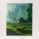 Schöne Fantasielandschaft inmitten üppiger und grüner Täler inmitten spektakulärer Säulengebirge. Fantasy Art Puzzle für Erwachsene erstellt mit KI generierende Software.