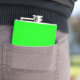 Die Farbe der grünen Neon passt sich diese an. Flachmann
