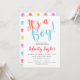Die A Boy Baby Shower Typografie regenbogenfarbene Punkte und Flecken Muster Personalisiert Baby Duwer Einladung .. einfach Ihre Angaben auf dieser personalisierbaren einladen, um Ihre Bedürfnisse zu personalisieren .. Babyprodukte von Ricaso Anzug.
