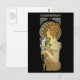 Vintages Jugendstil-Bild der jungen Frau in Profil mit einer weißen Feder. Schöne Kunst des tschechischen Künstlers Alfons Mucha.