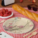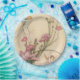 Niedliche Vintage Illustration von drei kleinen Feen, die auf Blumen springen